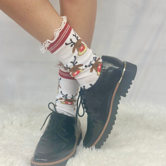 RUDOLPH red reindeer lace topped socks
