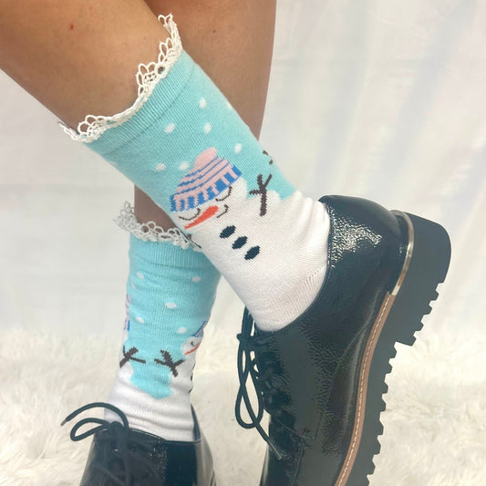SNOWMAN holiday lace topped socks