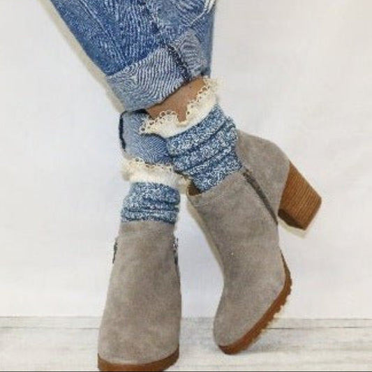 ORGANIC lace boot socks - denim blue