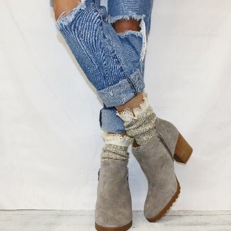 ORGANIC lace boot crew socks - taupe