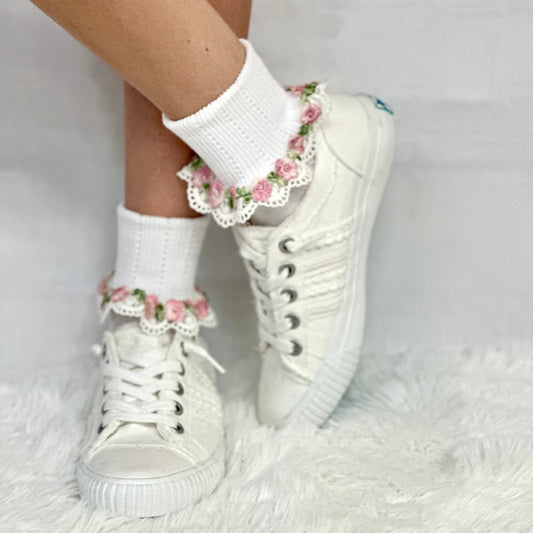 GARDEN PARTY floral lace ankle sock - pink white