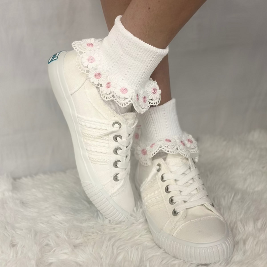 DAISY MAE lace cuff socks - white pink